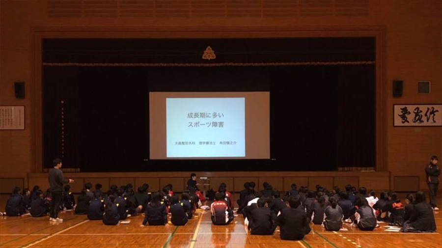 今年の1月30日にハンドボール部を含め7つの部活動、計61名の生徒に対して、【成長期に多いスポーツ障害】をテーマにお話しさせて頂きましたので、報告させて頂きます。